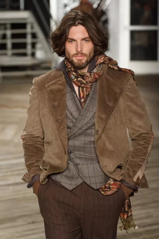 Abboud’s fashions were layered, rich in earth tone colors and fabrics. Vests, scarves, jackets with twice-waist wrapped belts, tapestry fabric carpet bag handles and warm kid leather gloves were the details to evoke the period. MËNAJI’s ability to make men look good and natural ensured a spectacular runway show in respect to their quality products and undetectable cosmetics with high DEF coverage.
